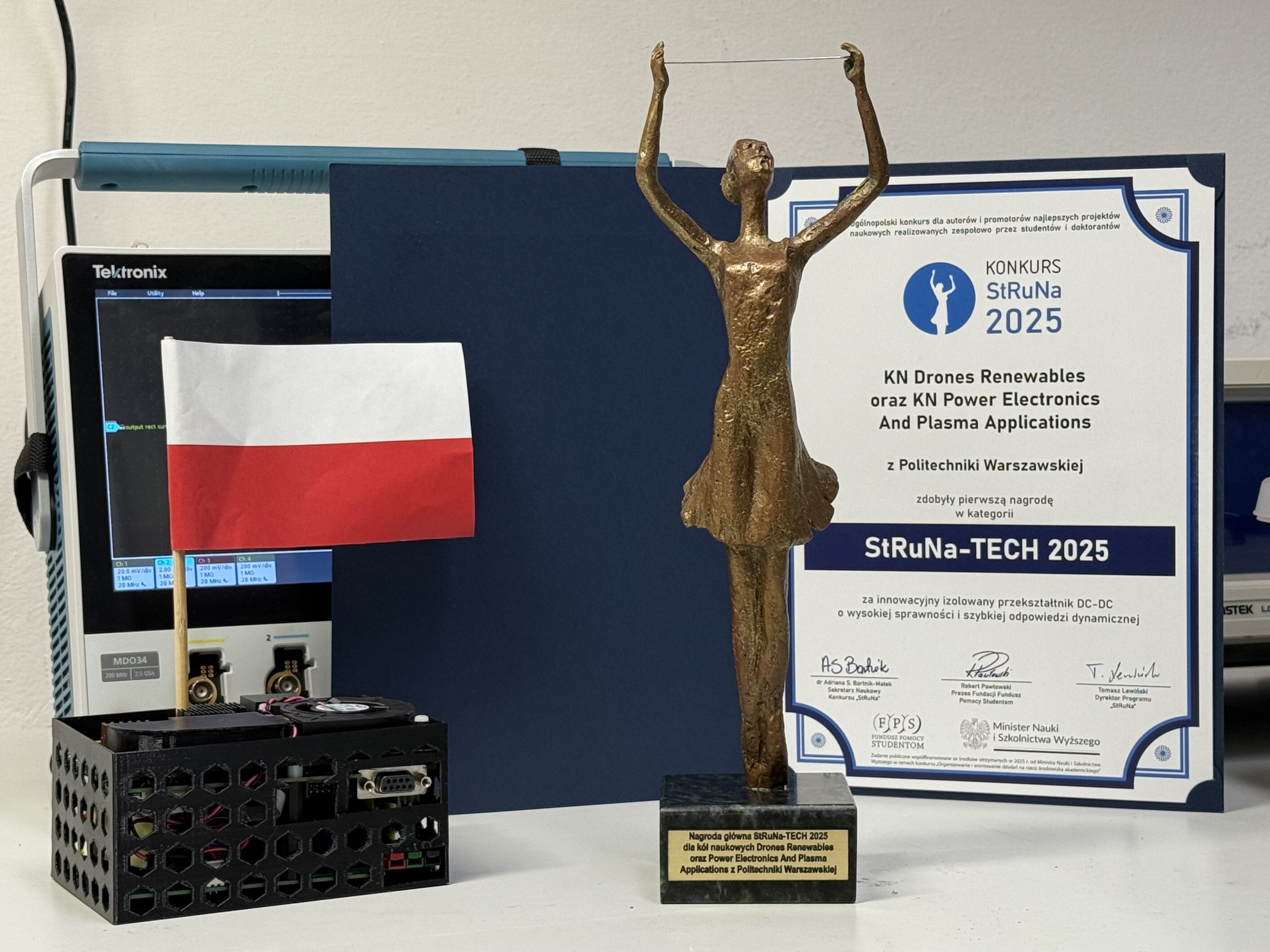 Jednym z nich był zespół z Wydziału Elektrycznego składający się z członków kół naukowych DREN – Drones Renewables oraz PEPA RG – Plasma Applications Research Group. Zajęli oni pierwsze miejsce dzięki projektowi „Innowacyjny izolowany przekształtnik DC-DC o wysokiej sprawności i szybkiej odpowiedzi dynamiczne”.